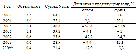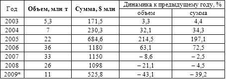 Объем экспорта цемента Китаем в 2003–2009 гг.
