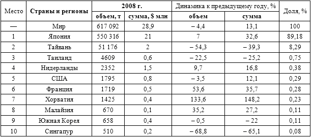 Среди основных импортеров можно выделить десять стран, которые в 2008 году закупили 69,1% продукции в стоимостном выражении от общего объема китайского экспорта.